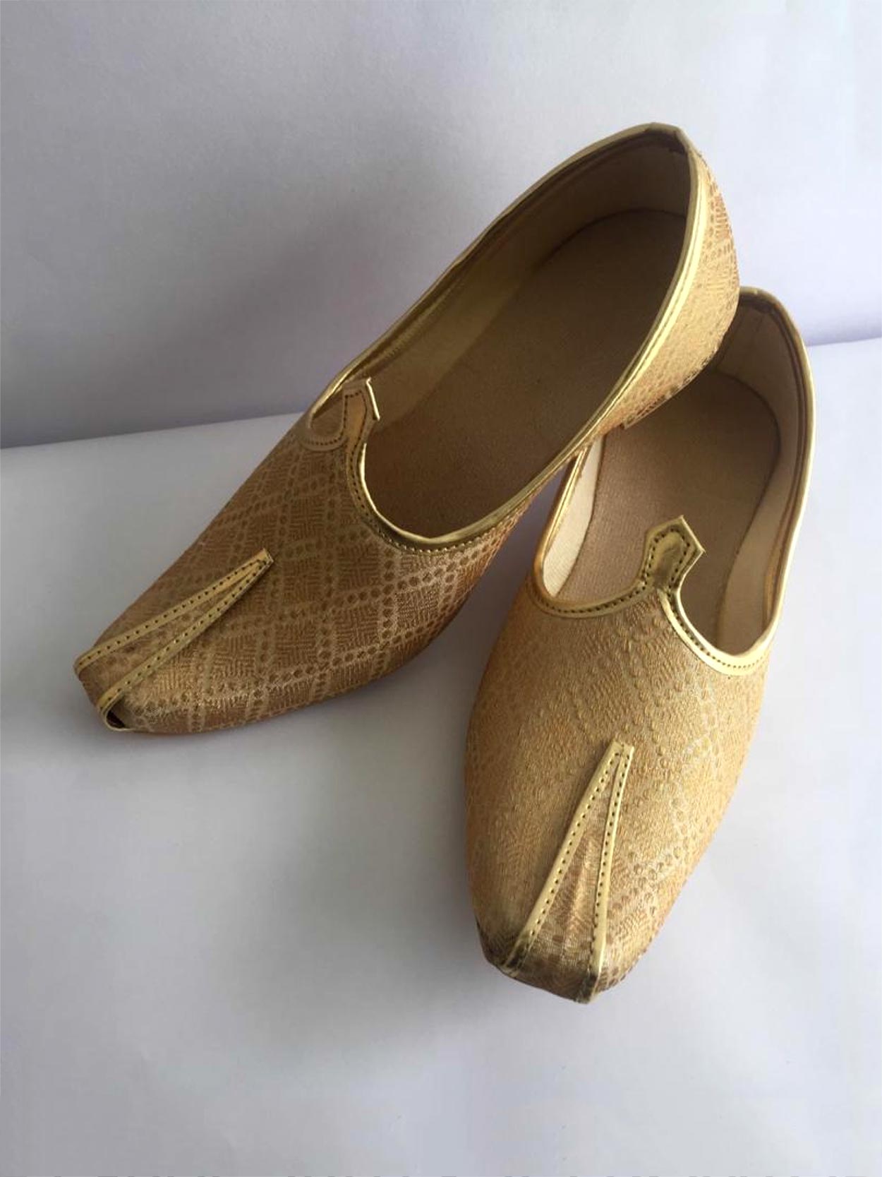 Golden Colour Mojari For Groom Sherwani.