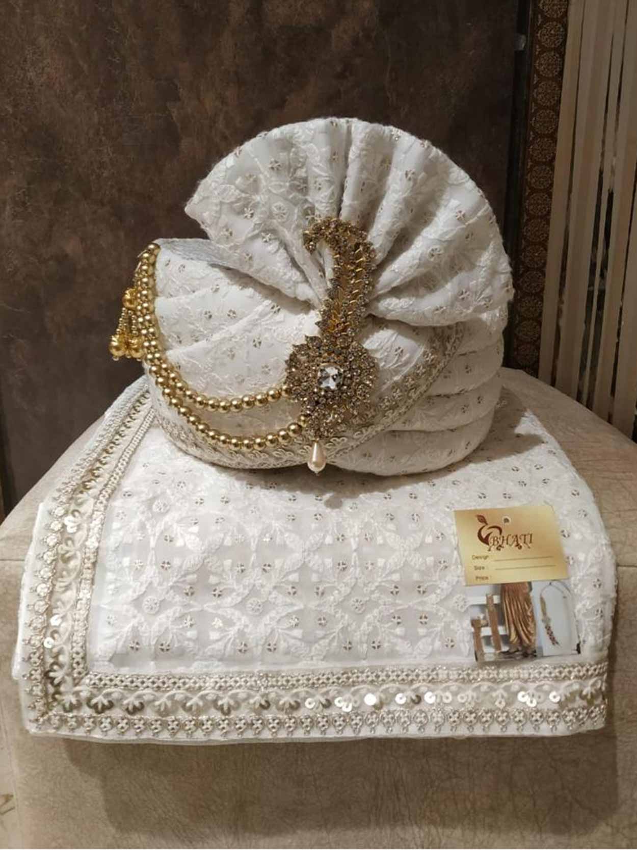 Lucknowi Fabric Mens Wedding Turban White Colour.