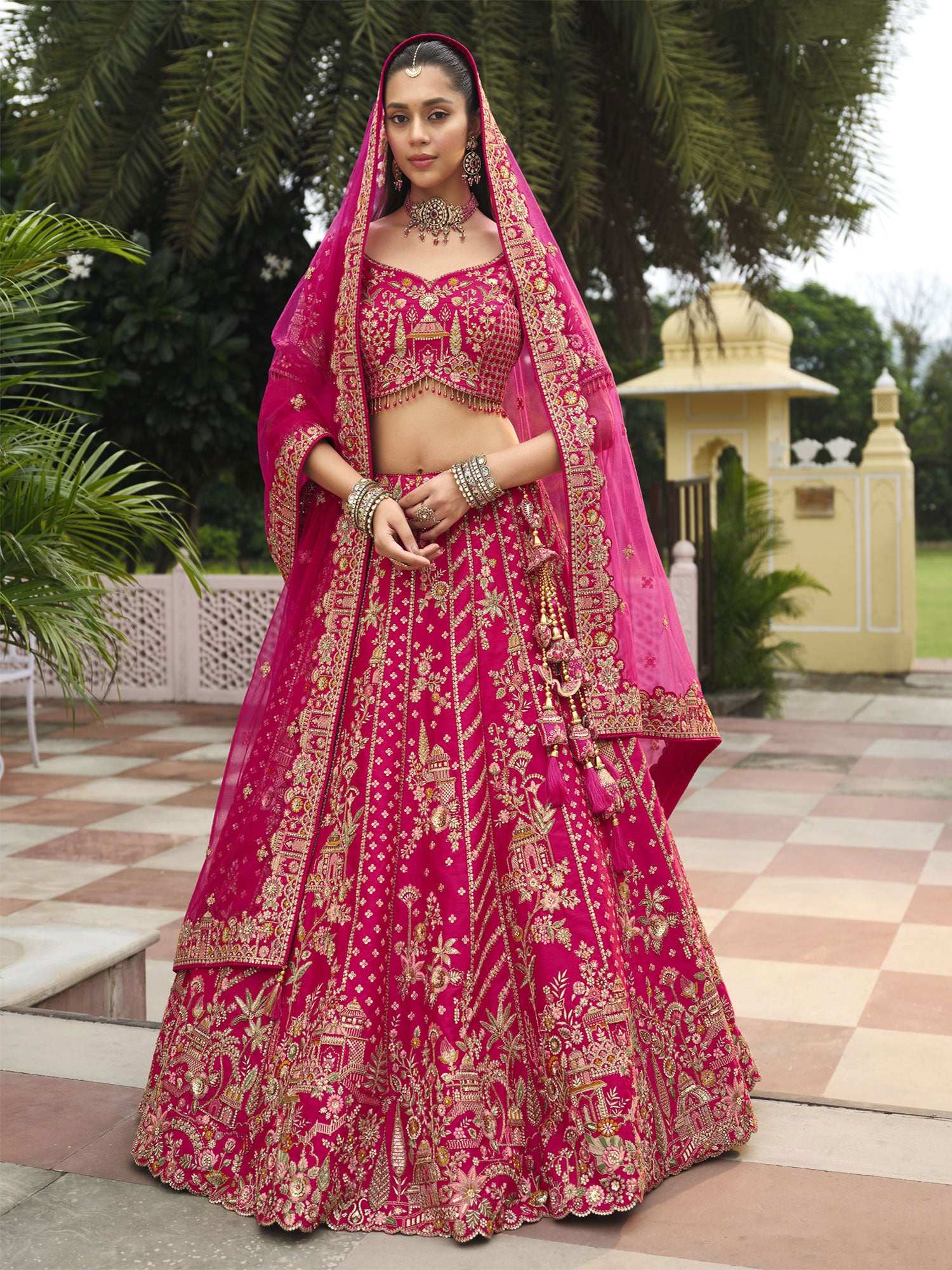 Pink Heavy Zari Augmented Wedding Lehenga Choli