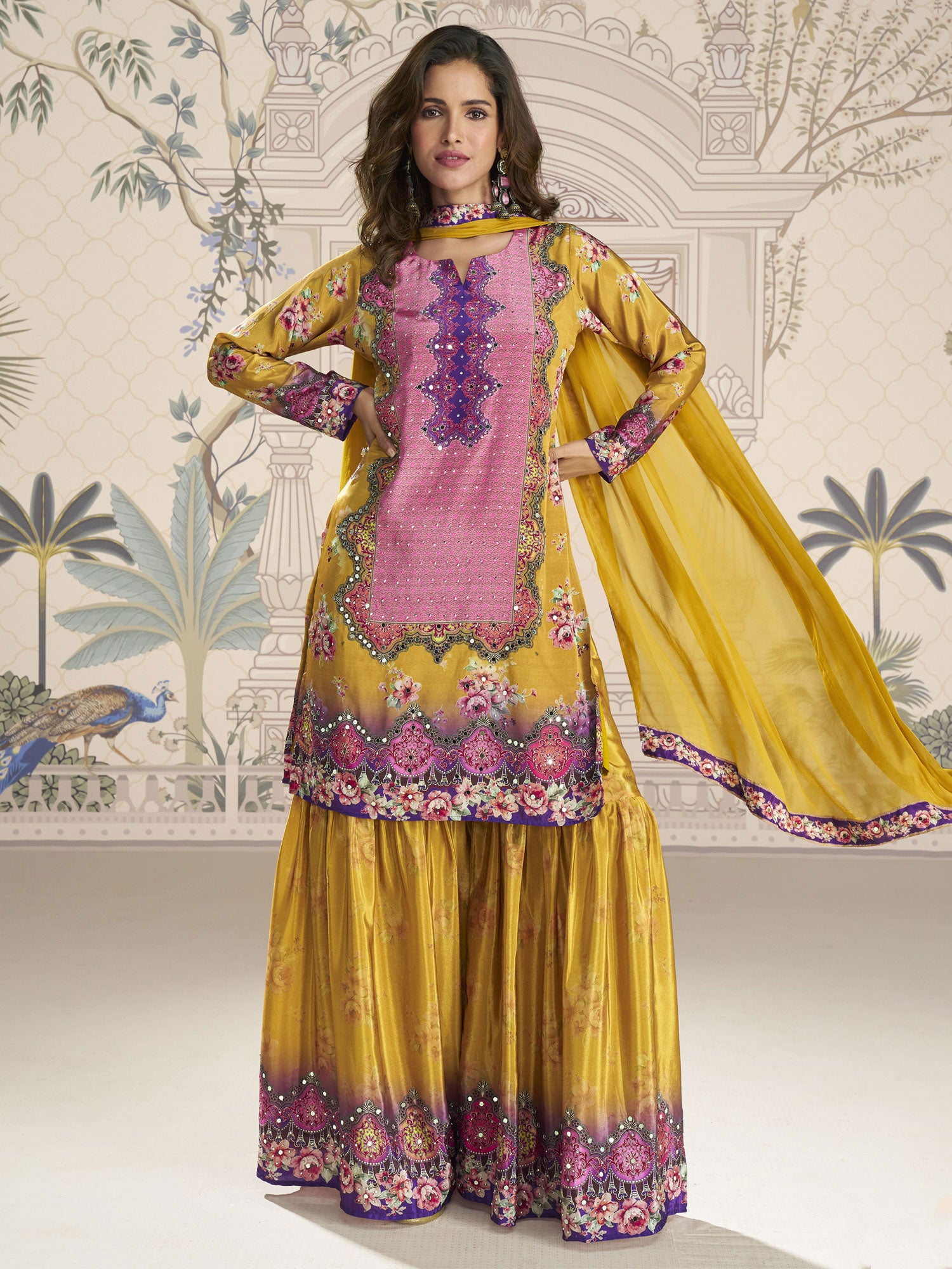 Yellow Mirror Work Sharara Style Salwar Kameez