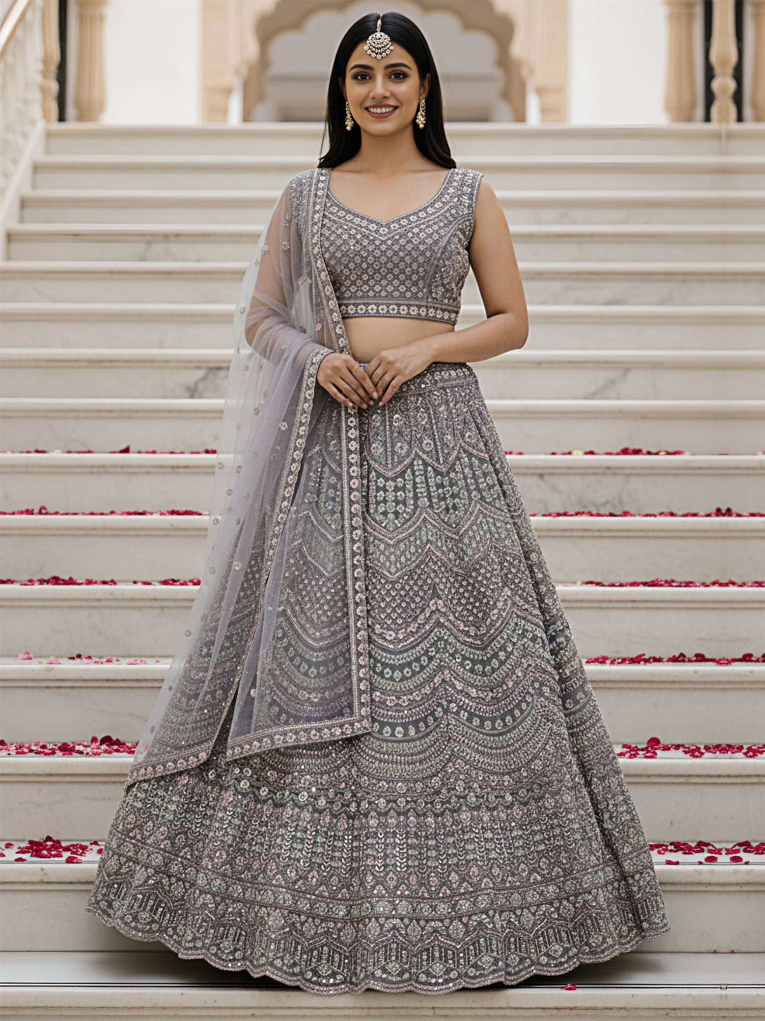 State Grey Party Wear Embroidered Lehenga Choli