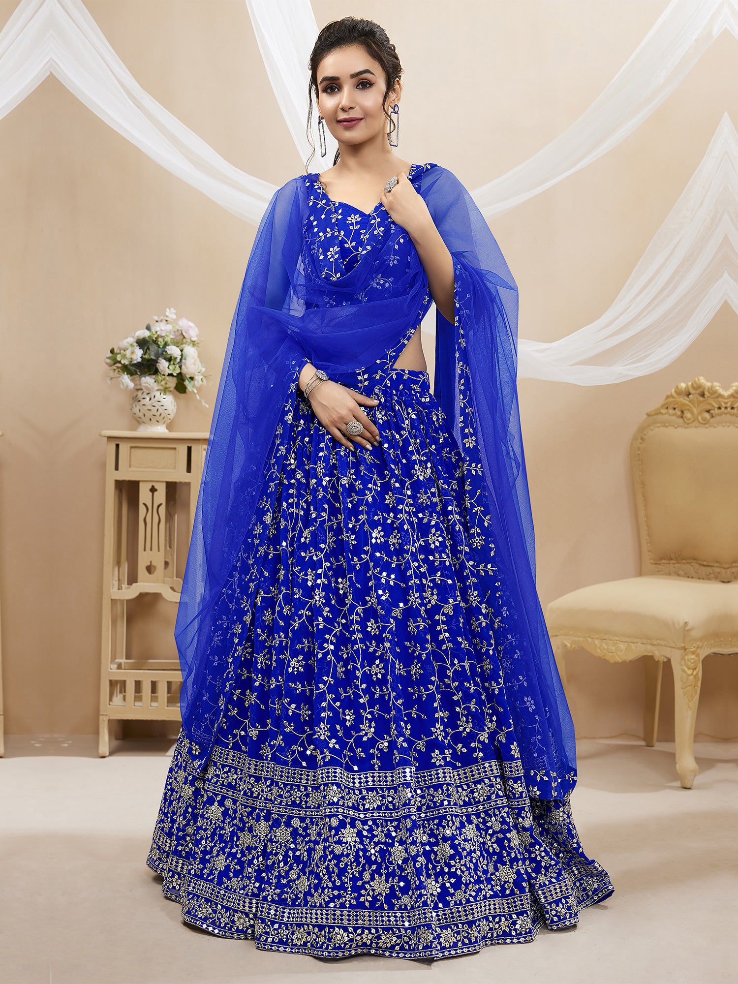 Royal Blue Georgette Sequin Embroidered Lehenga Choli