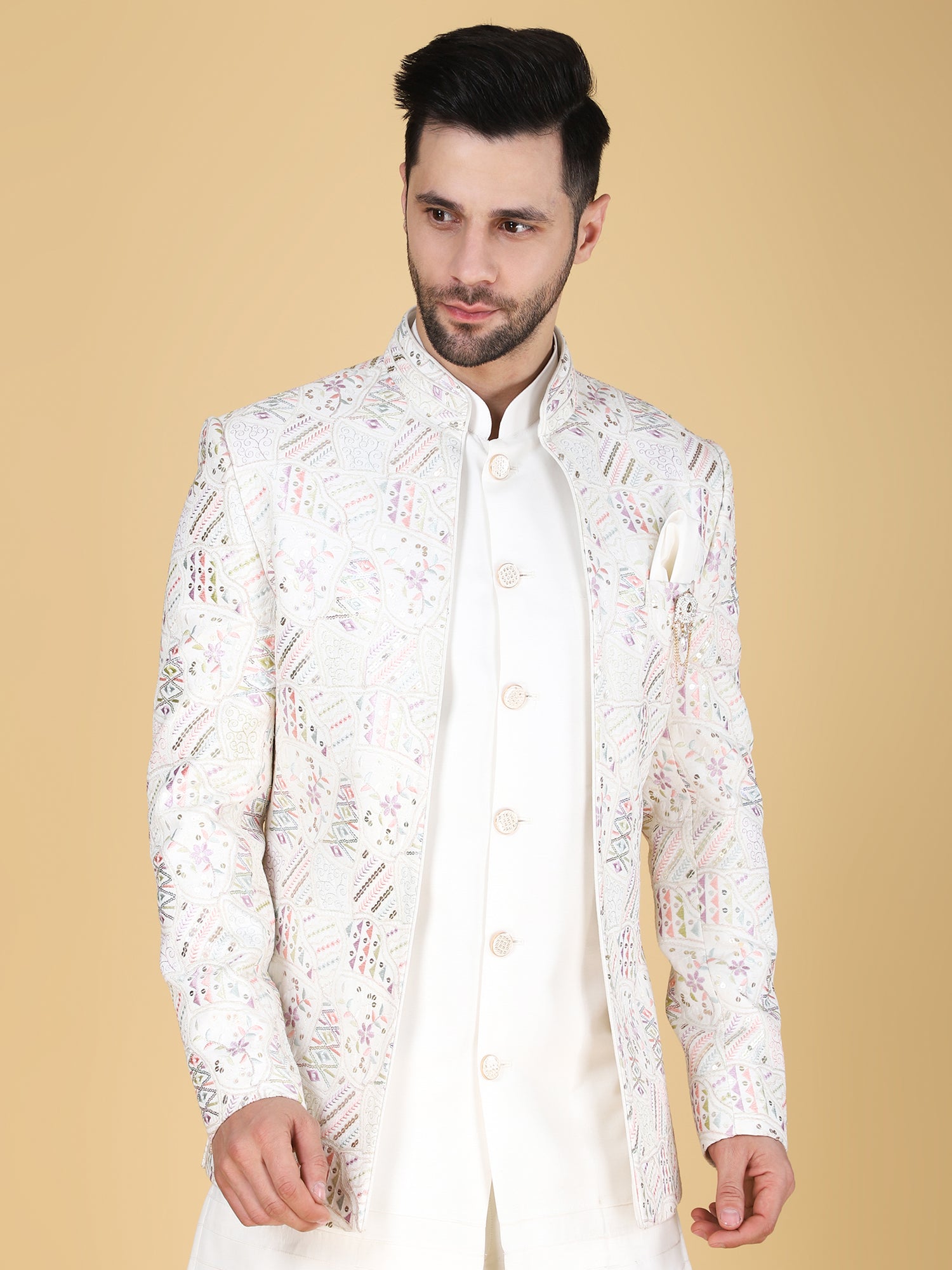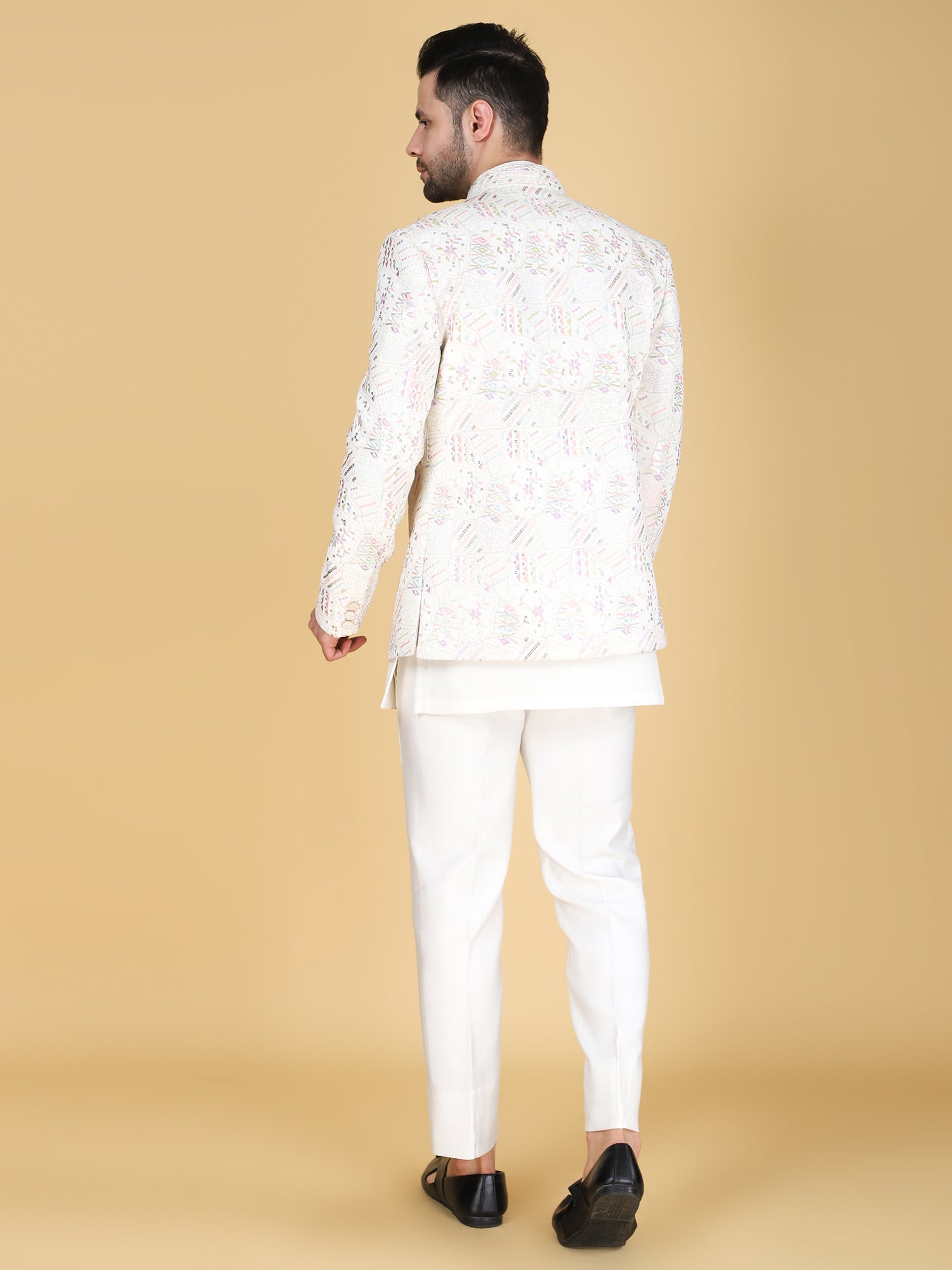 • Off White Sequins Augmented Men's Jodhpuri Set