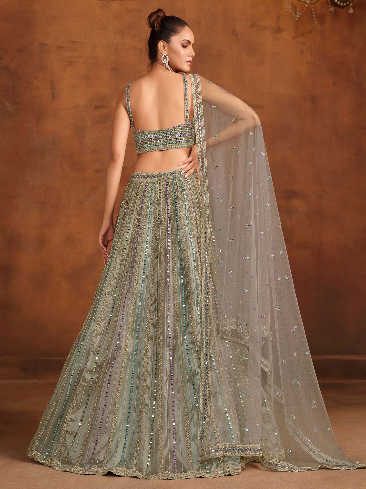 Multicolor Mirror Embroidered Lehenga Set In Net