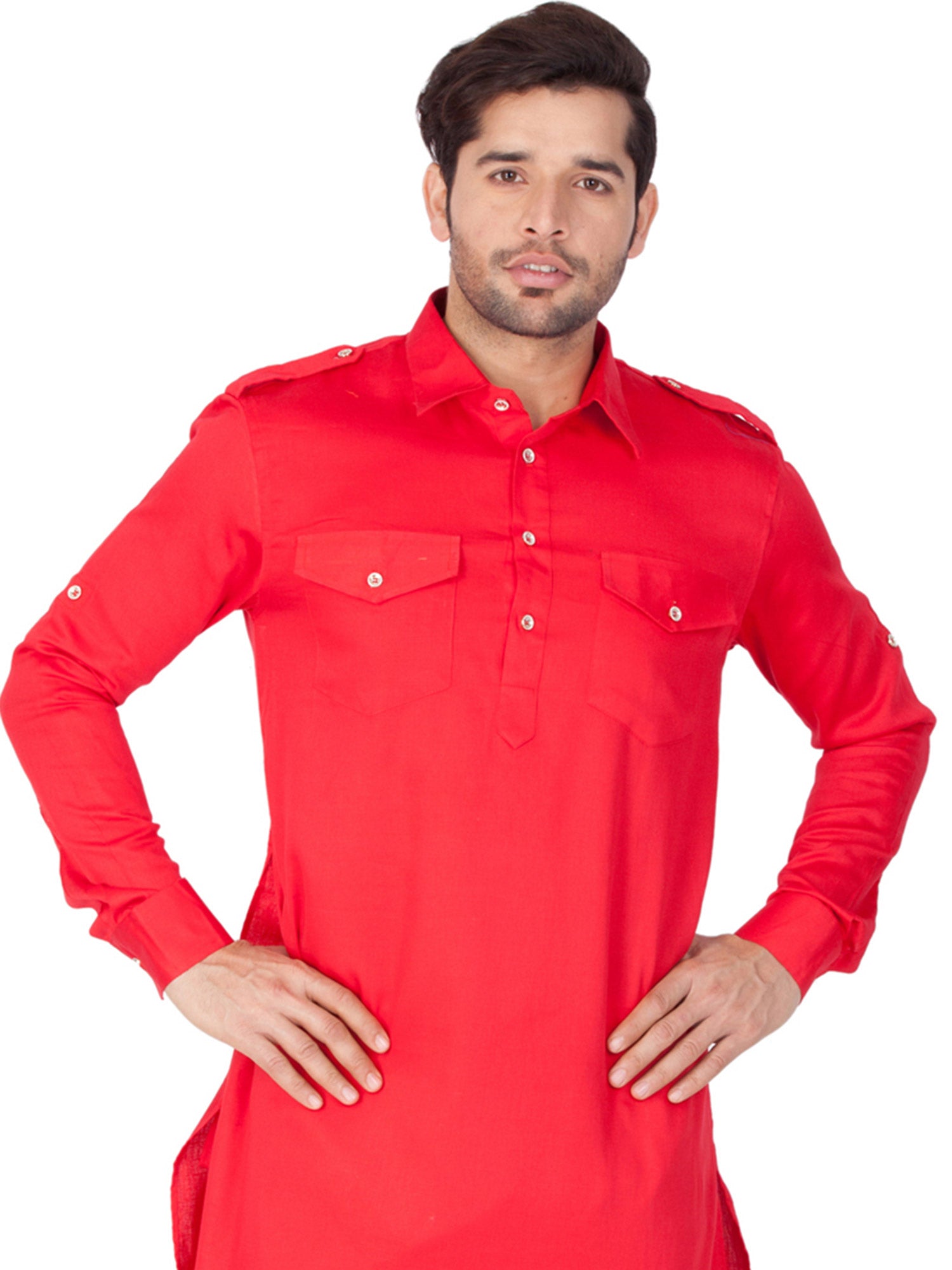 Red Redaymade Pathani Suit In Cotton Wear
