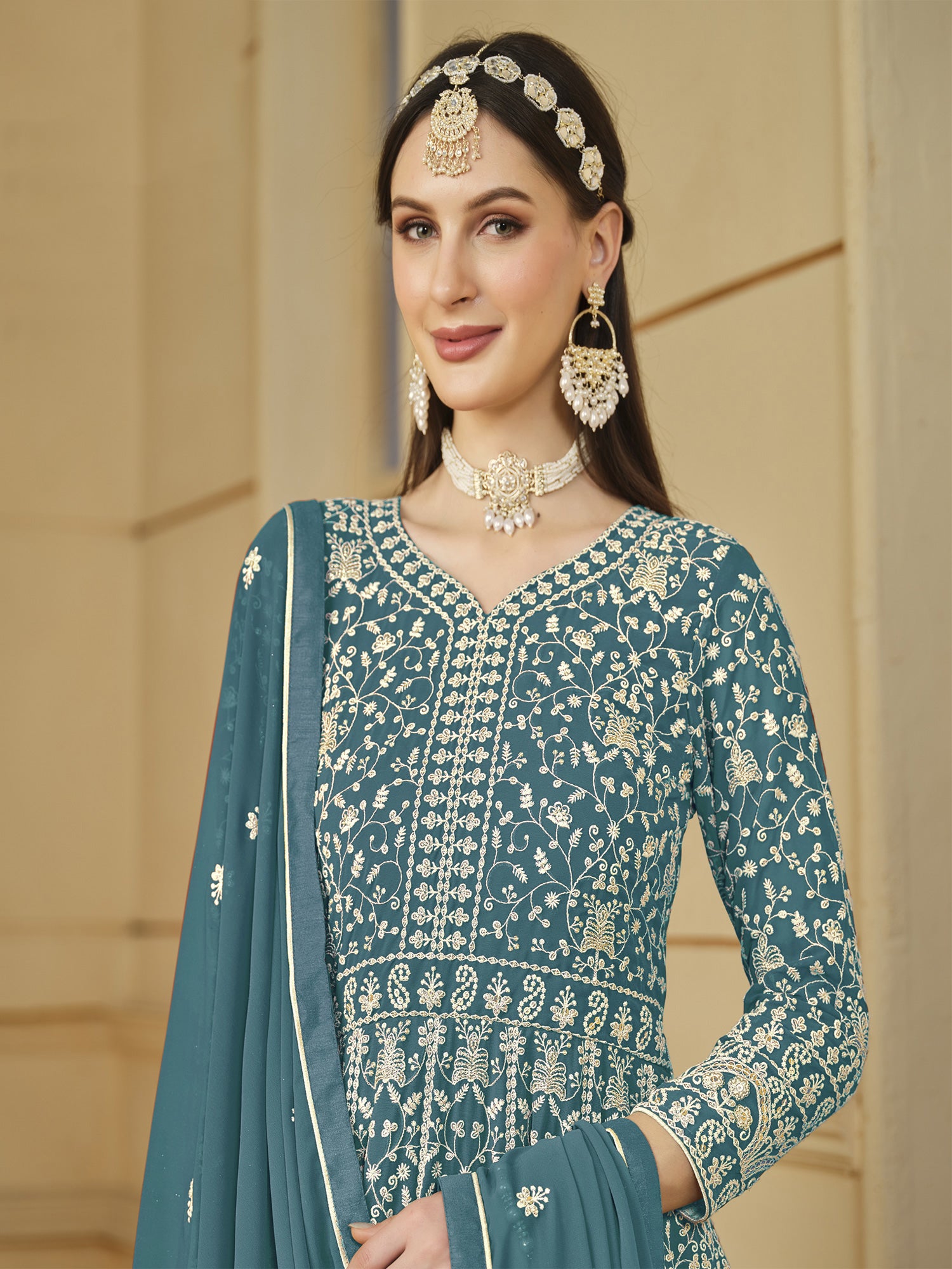 Teal Blue Festive Wear Georgette Anarkali Salwar Kameez