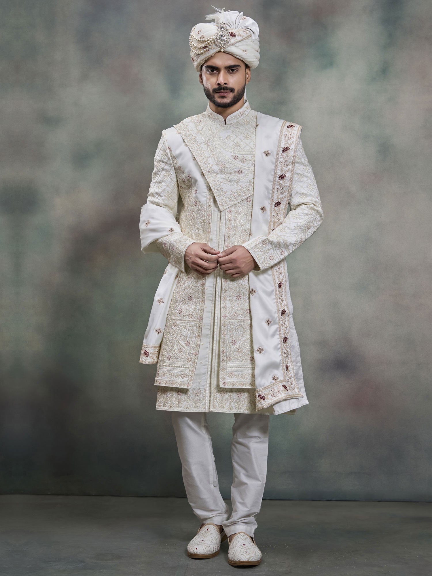 Cost Includes Stitched Sherwani,Stole & Matching Pyjama