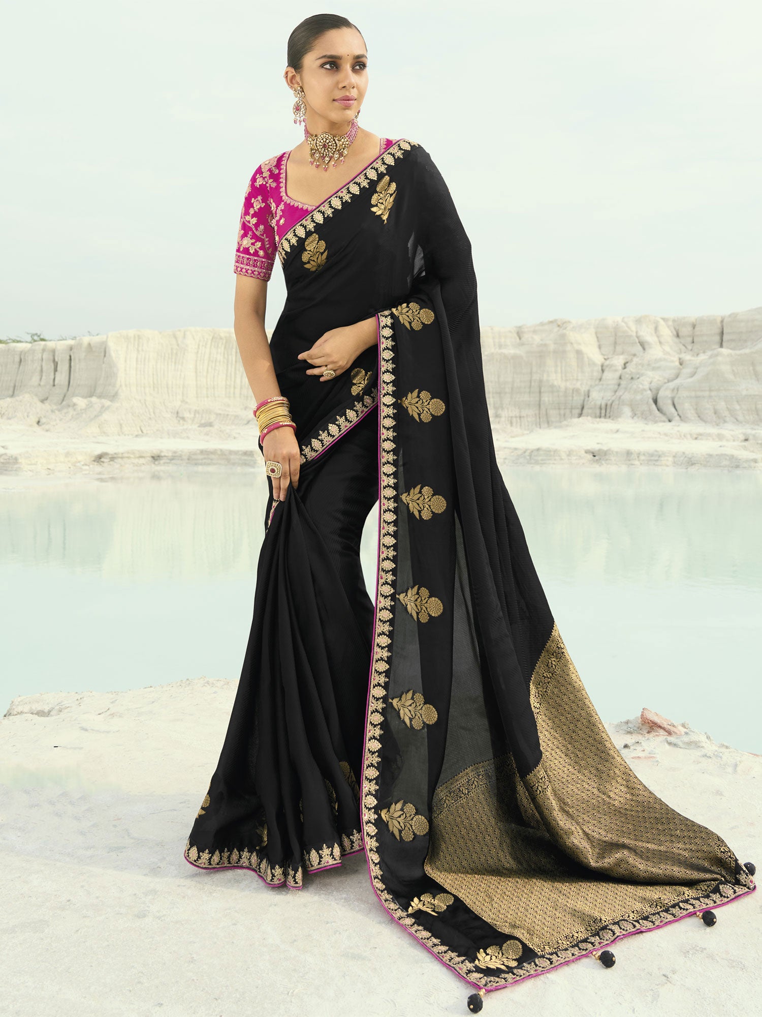 Black Zari Work Bridesmaid Saree In Organza