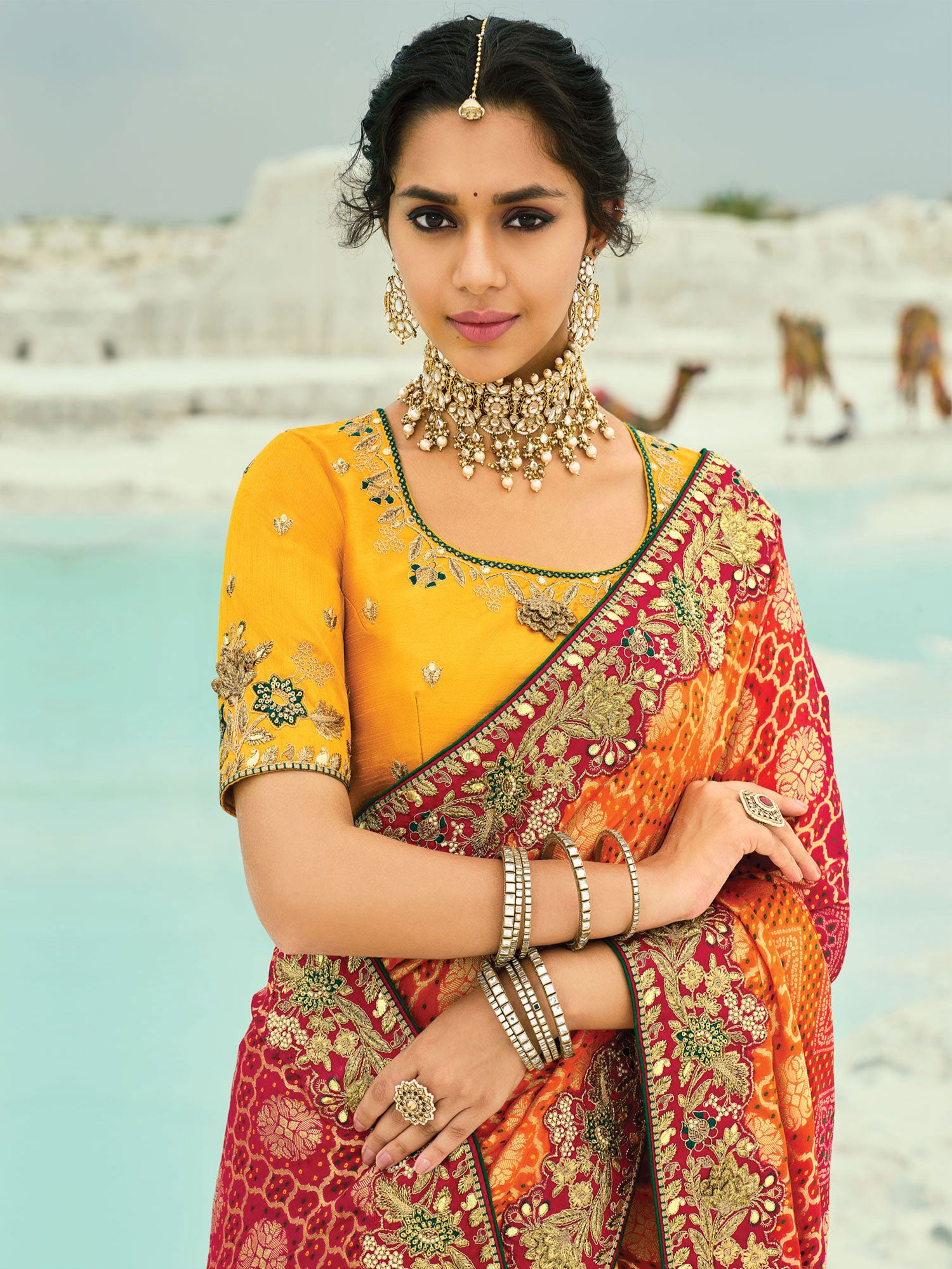 Multicolor Shaded Traditional Saree In Floral Embroidery