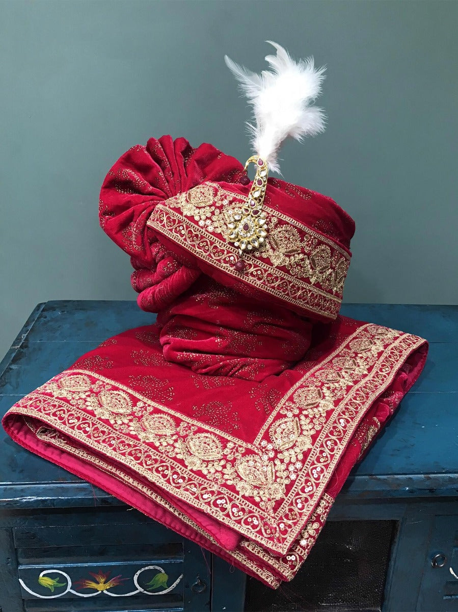 https://parivarceremony.com/products/pink-wedding-wear-embroidered-safa-in-velvet-p7001ac24