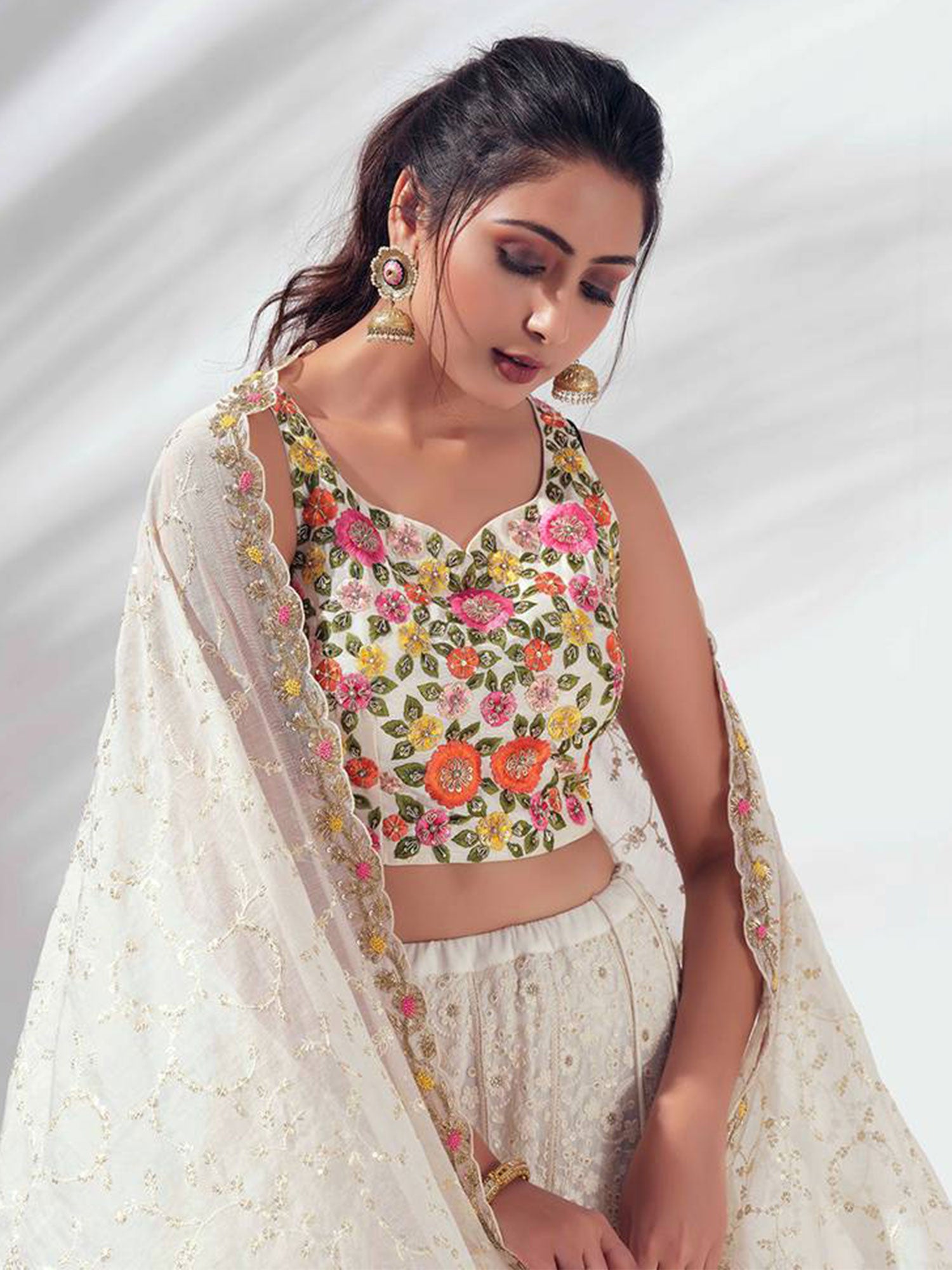 White Bridesmaid Lehenga Set With Floral Embellishment