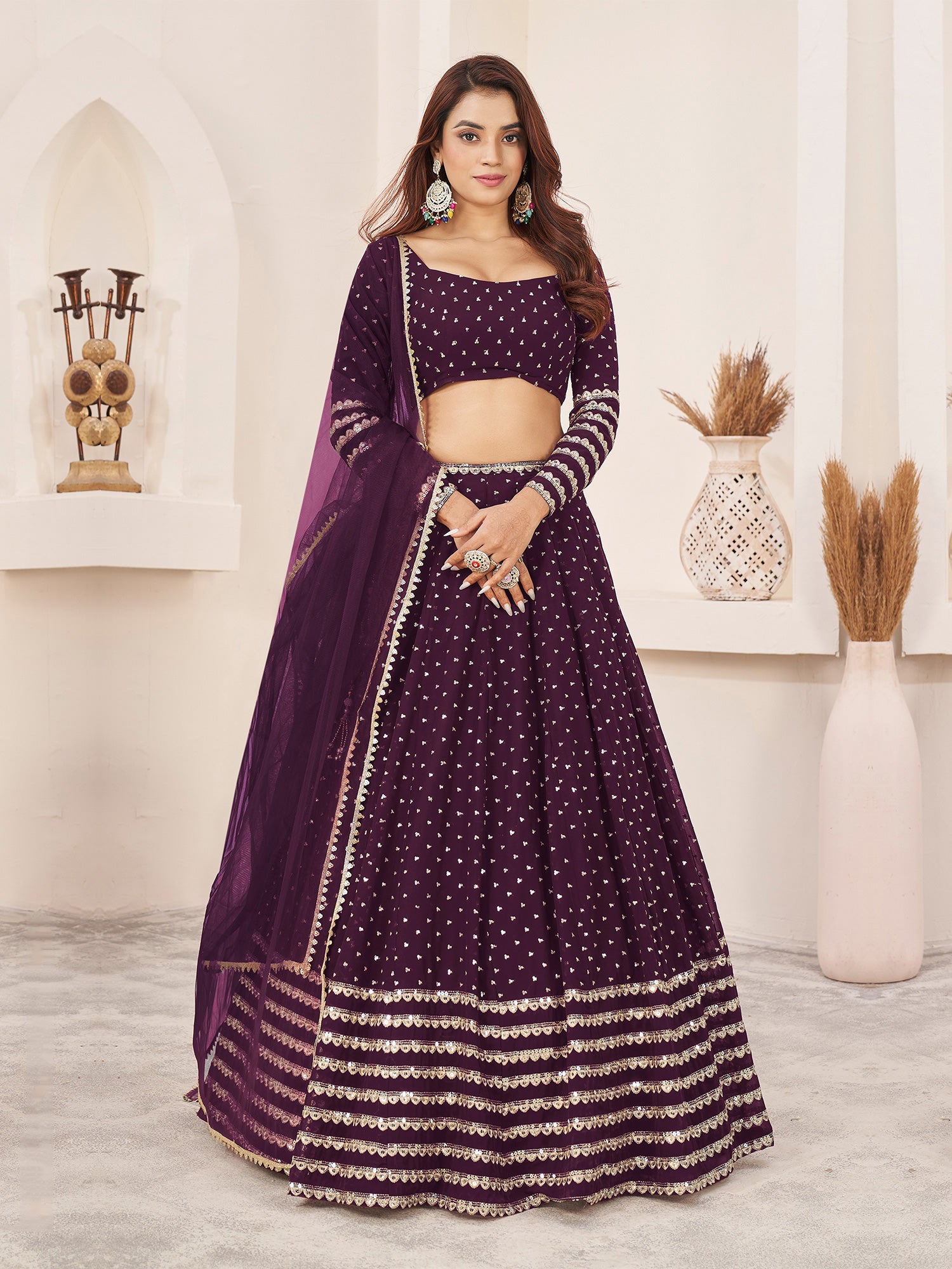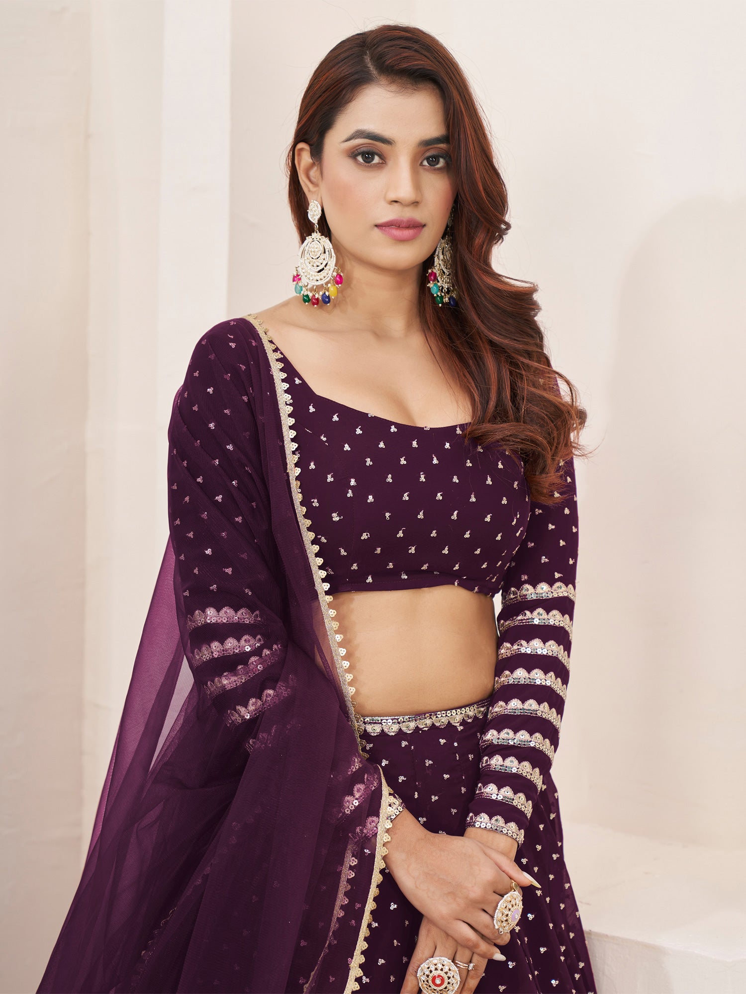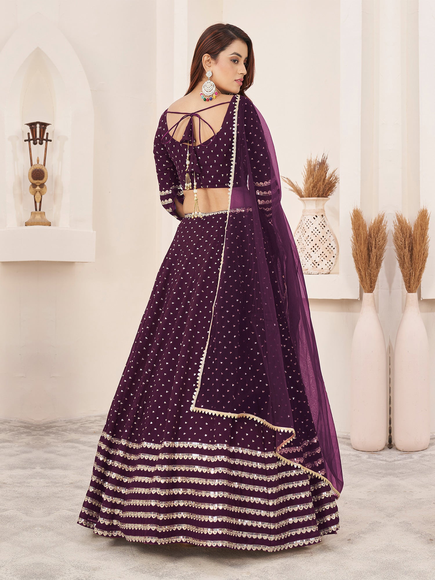Wine Sequins Augmented Georegette Lehenga With Choli