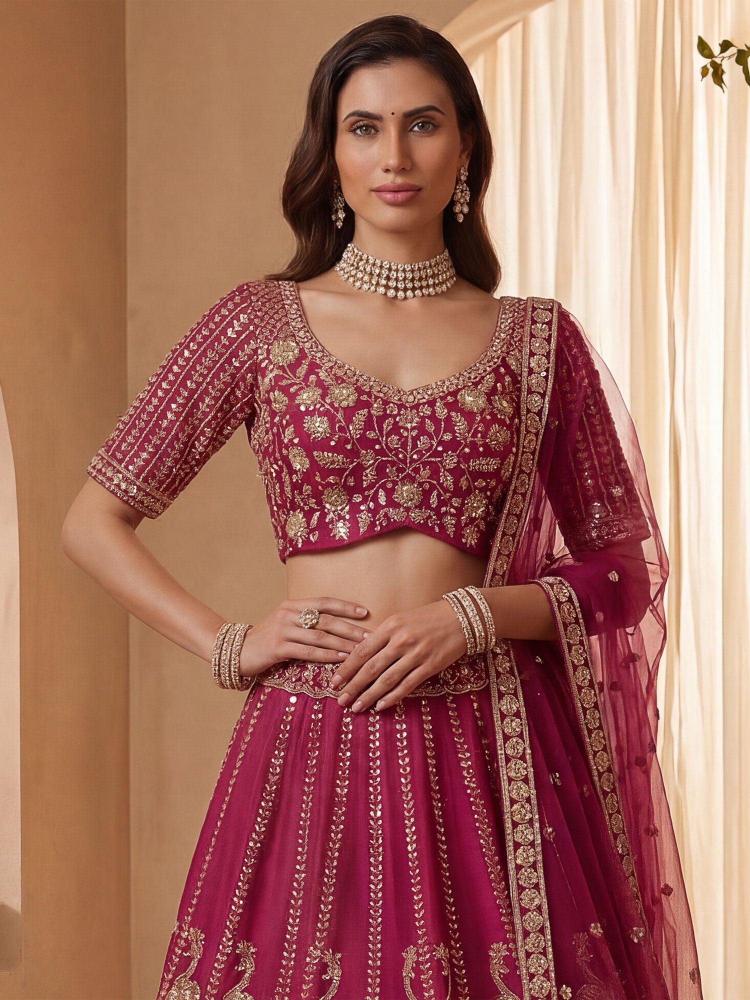 Pink Silk Designer Lehenga Set In Zari Embroidery