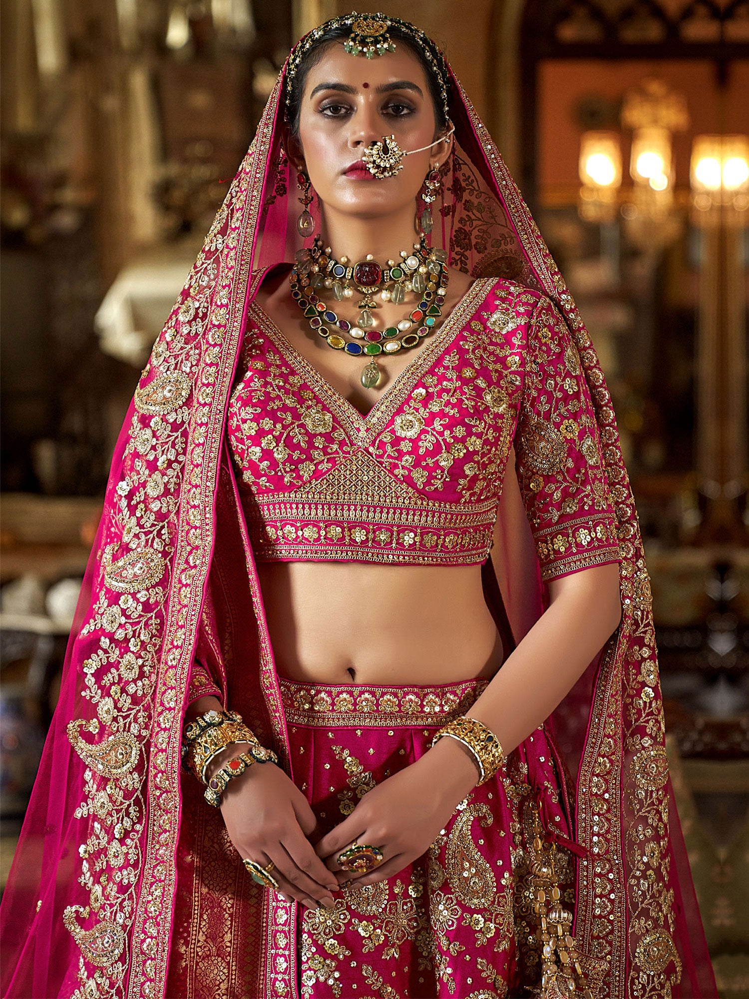 Rani Pink Zari Embellished Designer Silk Lehenga Set