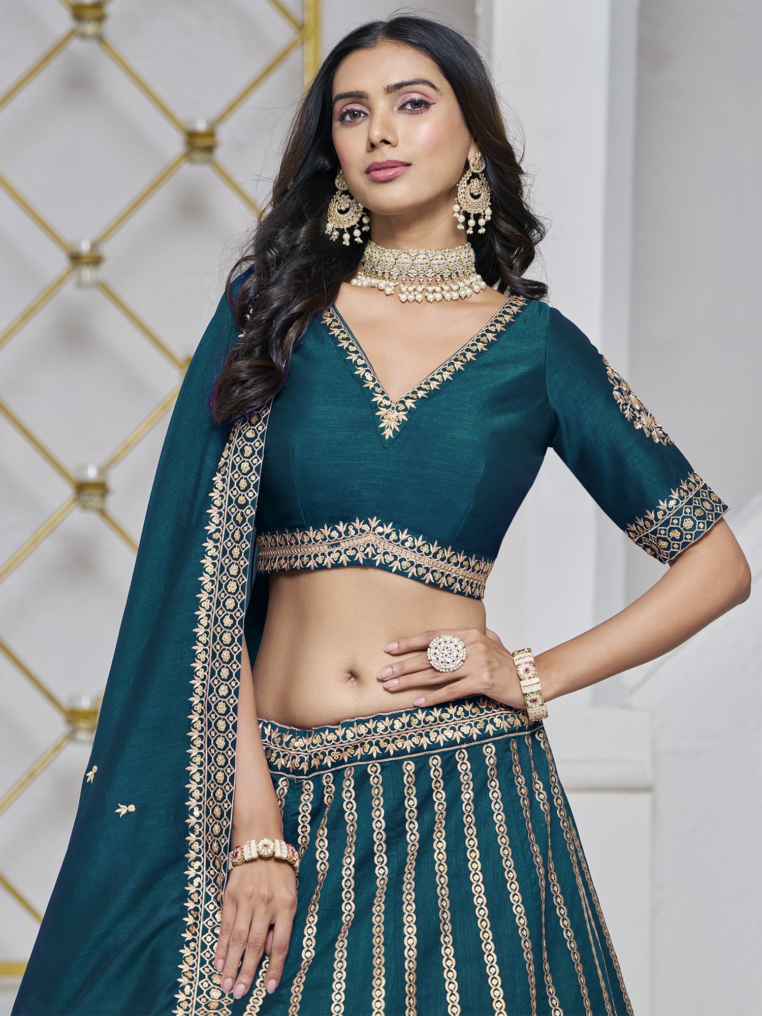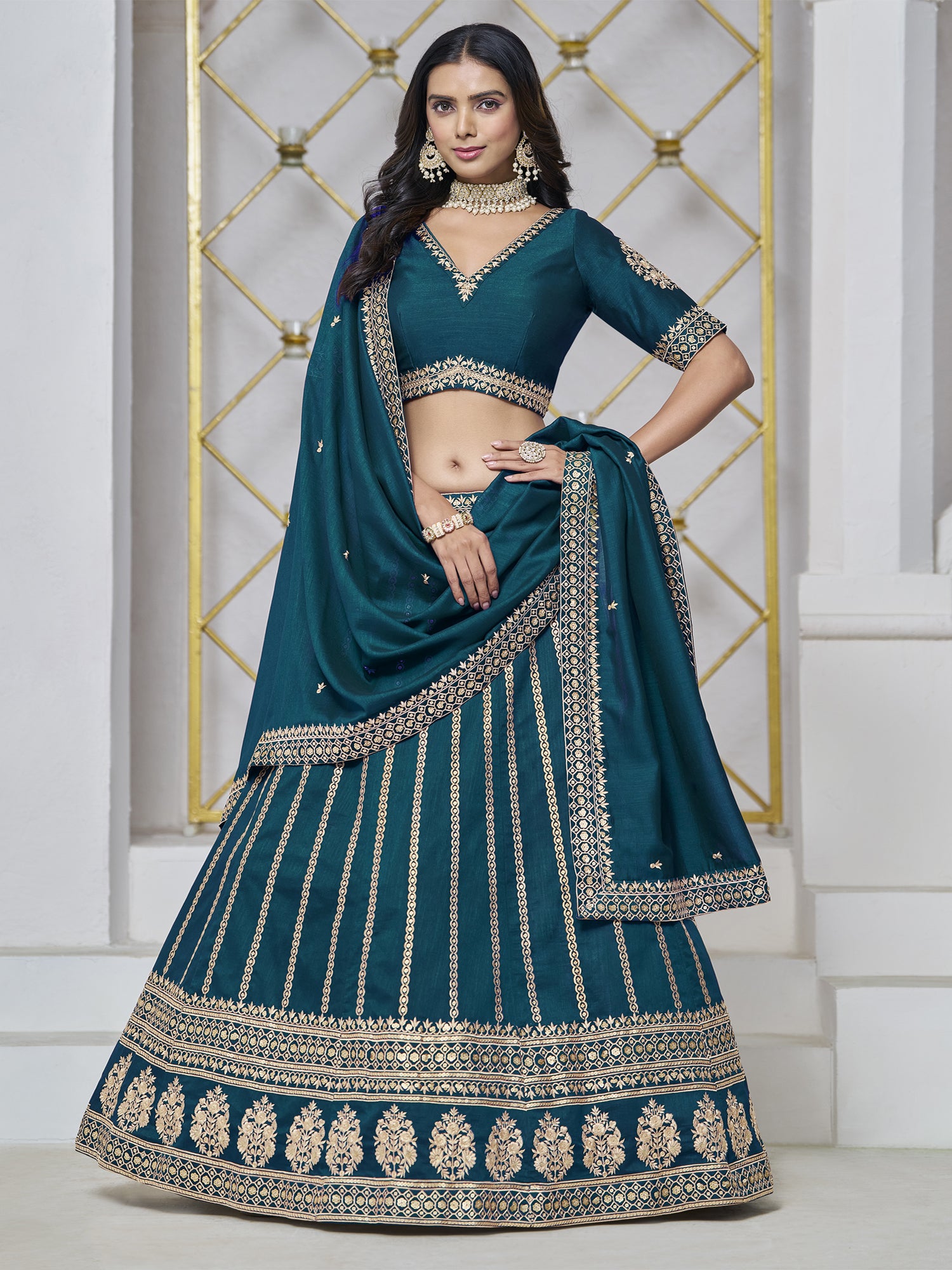 Teal Blue Sequins Work Party Lehenga Set
