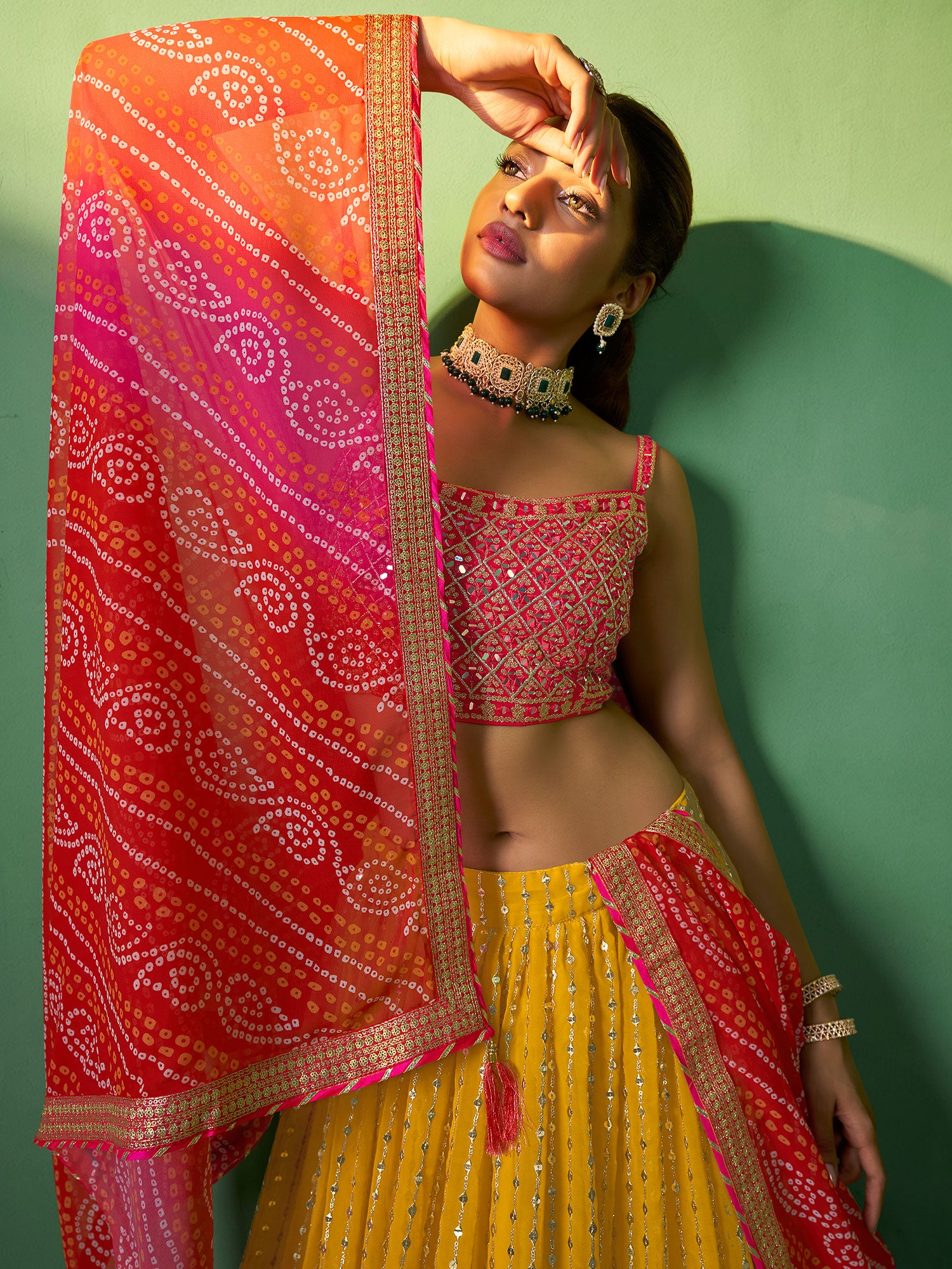 Yellow Embroidered Festive Lengha With Embroidered Choli