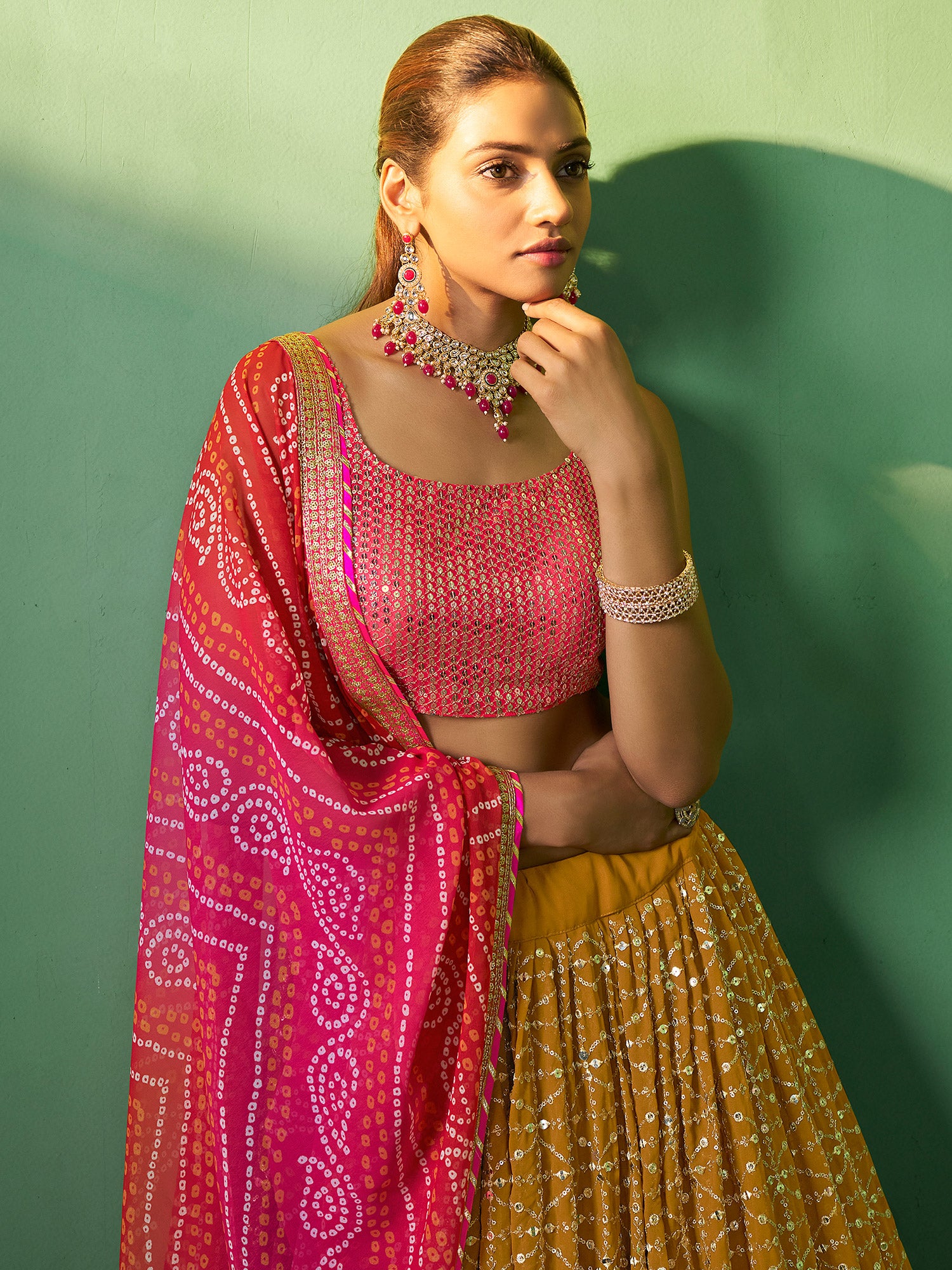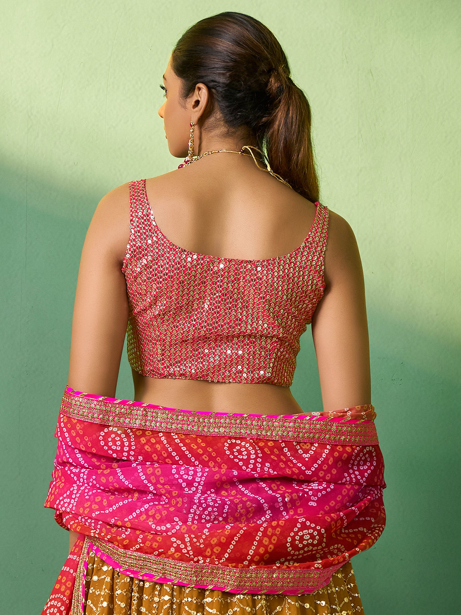 Yellow Sequins Embroidered Georgette Lengha With Dupatta