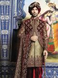 Royal Maroon,Golden Color Silk Sherwani With Matching Patiala is Embellished With Zardozi,Stone Work to add a grace.