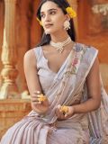 Get your hands on this beige color saree crafted in linen. Designed using floral printed patterns. Comes with a matching beige color blouse in linen. Note: The accessories featured are purely for fashion purposes. Due to photography reasons, some color variations may occur. The un-stitched blouse may be customized up to 42 inches.