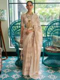Exude major regal vibes as you wear this soft beige color party wear saree crafted in silk. Designed using chikankari patterns with sequins enhancements, showcasing distinstive borders and pallu. Comes with a matching beige color blouse in silk. Please keep in mind that the accessories featured are purely for fashion purposes. Due to photography reasons, some color variations may occur. The un-stitched blouse may be customized up to 42 inches.