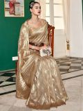 Overwhelm the audience adorning this lush beige color saree crafted in art silk. Enhanced using zari woven patterns all over, showcasing distinstive borders and pallu. Comes with a matching beige color blouse in art silk. Note: The accessories featured are purely for fashion purposes. Due to photography reasons, some color variations may occur. The un-stitched blouse may be customized up to 42 inches.
