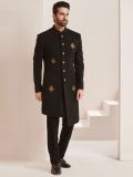 Walk in style adorning this black color asymmetric indo western made in silk. Enriched using thread embroidery work all over. Available with black color trouser in silk. Note: Some color variations may occur owing to photography causes. Up to 1 inch of measurement fluctuation is possible.
