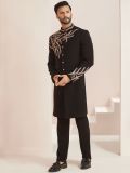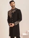 Get set to look regal adorning this black color indo western made in silk. Designed using thread and zari embroidery work. Paired with black color trouser in silk. Note: Some color variations may occur owing to photography causes. Up to 1 inch of measurement fluctuation is possible.