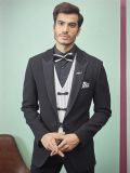 Auspicious Black Colour Imported Fabric Designer Wedding Suit.