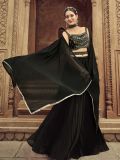 Overwhelm the audience as you wear this black color pleated lehenga in georgette. Augmented with sequin, stone with thread work heavy embroidery. Paired with a matching black color embroidered cut sleeved choli in georgette and black color dupatta, made in net. Note: The accessories featured are purely for fashion purposes. Due to photography reasons, some color variations may occur. The semi-stitched choli and lehenga waist may be customized up to 42 inches.