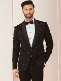 Mark your appearance adorning this black color tuxedo made in italian fabric. Crafted with thread and hand embroidery work. Available with a white cotton shirt, bow tie and a matching black trousers. Note: Some color variations may occur owing to photography causes. Up to 1 inch of measurement fluctuation is possible.