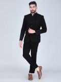 Embrace your ethnic self as you adorning this black color jodhpuri suit designed in polyster cotton. Enhanced with hand work embellishments all over. Available with a matching black color pant made in polyster cotton. Note: Some color variations may occur owing to photography causes. Up to 1 inch of measurement fluctuation is possible.