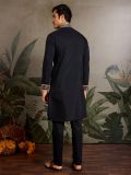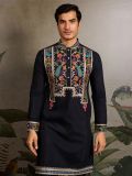 Spreading the sparking vibes with this black color readymade kurta designed in viscose silk. Decorated with sequins with floral thread embellishment work all over. Comes with a mathching black color pyjama in cotton. Note: Some color variations may occur owing to photography causes. Up to 1 inch of measurement fluctuation is possible.