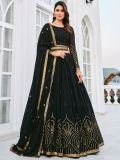 Make a classy statement adorning this black color lehenga in georgette. Designed with sequins and thread embroidered work. Available with a black color embroidered choli, an embroidered belt and black dupatta, both made in georgette. Note: The accessories featured are purely for fashion purposes. Due to photography reasons, some color variations may occur. The semi-stitched choli and lehenga waist may be customized up to 42 inches.