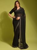 Slay with your classy taste as you wear this black color saree crafted in georgette. Designed using sequins and thread embroidered details, showcasing distinstive borders with stone work. Comes with a matching black color blouse in georgette. Note: The accessories featured are purely for fashion purposes. Due to photography reasons, some color variations may occur. The un-stitched blouse may be customized up to 42 inches.