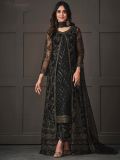 Spread cheer and happiness adorning this black color jacket style slitted kameez in net. Augmented using sequins and dori work embroidery all over. Available with a black embroidered dupatta in net and matching pants in satin. Note: Accessories shown are for styling purpose only. Slight color variation may occur due to photographic reasons. The semi-stitched kameez can be customised upto 42 inches.