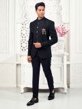 Elevate your fashion game with this Jodhpuri suit, designed for the modern man who values tradition with a contemporary twist. This suit features a bandhgala jacket designed in black color adorned with intricate embroidery. The suit is crafted from premium fabric with a luxurious sheen, ensuring comfort and style for any occasion, from weddings to formal events. Paired with fitted trouser/pant, made in black color perfect for making a lasting impression. Elevate your wardrobe with this Jodhpuri suit that captures the essence of heritage.Note: Some color variations may occur owing to photography causes. Up to 1 inch of measurement fluctuation is possible.