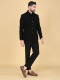 Mirror the richness of his love story wearing this black color jodhpuri suit set designed in polyster cotton fabric. Enhanced using hand work embellishment. Topped with a matching black color embroidered jacket and a black color pant, both made in cotton fabric. Note: Some color variations may occur owing to photography causes. Up to 1 inch of measurement fluctuation is possible