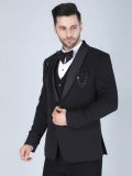 Mirror the sparkle in her eyes wearing this black color tuxedo suit set designed in polyster cotton. The tuxedo contains blazer coat paired with the waist coat, bow or a inside white color shirt and a pant in matching black color. Note: Some color variations may occur owing to photography causes. Up to 1 inch of measurement fluctuation is possible.