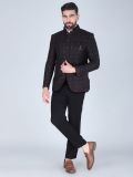 Show your feminine side to the world wearing this black color jodhpuri suit designed in velvet fabric. Furnished with sequins and heavy floral thread work embellishment all over. Paired with a matching black color pant made in cotton. Note: Some color variations may occur owing to photography causes. Up to 1 inch of measurement fluctuation is possible.