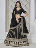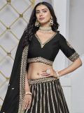 Spread your charm everywhere wearing this black color lehenga in art silk. Decorated with sequins and zari embroidered work. Paired with a matching a black color choli and a black color dupatta, made in art silk. Note: The accessories featured are purely for fashion purposes. Due to photography reasons, some color variations may occur. The semi-stitched choli and lehenga waist may be customized up to 42 inches.