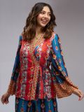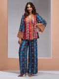 Get the praiseworthy look wearing this blue color co-ord set made in muslin silk. Enhanced with floral printed pattern all over. Note: Some color variations may occur owing to photography causes. Up to 1 inch of measurement fluctuation is possible.