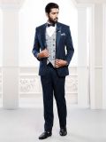 Blue Colour Self,Imported Fabric Designer Tuxedo Suit.