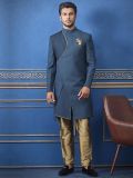 Ideally suited for special occassions is this wonderful Blue Colour Imported Fabric Men's Indo Western With Matching Pyjama.