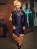 Royal Blue Colour Silk Fabric Men's Indowestern With Matching Patiala is Embellished With Lace,Thread Work to add a grace.