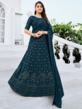 Spread your charm everywhere wearing this peacock blue color lehenga in georgette. Decorated with sequins and thread embroidered work. Paired with a matching blue color embroidered choli and blue dupatta, both made in georgette. Note: The accessories featured are purely for fashion purposes. Due to photography reasons, some color variations may occur. The semi-stitched choli and lehenga waist may be customized up to 42 inches.