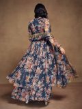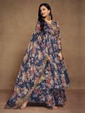 Reflect your glamour personality wearing with this blue color narkali style readymade kameez in chiffon. Augmented using zari work and enhanced with digital print in floral pattern. Assigned with a chiffon dupatta in floral embroidery and a palazzo style bottom, both made in blue color. Note: Accessories shown are for styling purpose only. Slight color variation may occur due to photographic reasons.