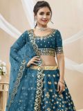 Elevate your ethnic style wearing this prussian blue color lehenga in art silk. Crafted with gota patti, zari embroidered work. Available with a matching blue color embroidered art silk choli and a blue net dupatta with scalloped borders. Note: The accessories featured are purely for fashion purposes. Due to photography reasons, some color variations may occur. The semi-stitched choli and lehenga waist may be customized up to 42 inches.