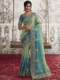 Be the best dressed diva adorning this shaded blue color saree crafted in silk. Furnished using stone, sequin and zari with floral thread embroidered, showcasing distinstive borders and pallu. Comes with a matching teal blue color embroidered blouse in silk. Note: The accessories featured are purely for fashion purposes. Due to photography reasons, some color variations may occur. The un-stitched embroidered blouse may be customized up to 42 inches.