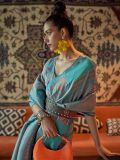 Look no less than a dream adorning this sky blue color saree crafted in silk. Enhanced using zari woven patterns, showcasing distinstive tasseled pallu. Assembled with a matching blue color blouse in silk. Note: The accessories featured are purely for fashion purposes. Due to photography reasons, some color variations may occur. The un-stitched blouse may be customized up to 42 inches.