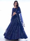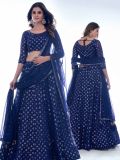 Spread your charm everywhere wearing this royal blue color designer lehenga in georgette. Decorated with sequins and thread embroidered work. Paired with a matching blue color embroidered choli and blue dupatta, both made in georgette. Note: The accessories featured are purely for fashion purposes. Due to photography reasons, some color variations may occur. The semi-stitched choli and lehenga waist may be customized up to 42 inches.